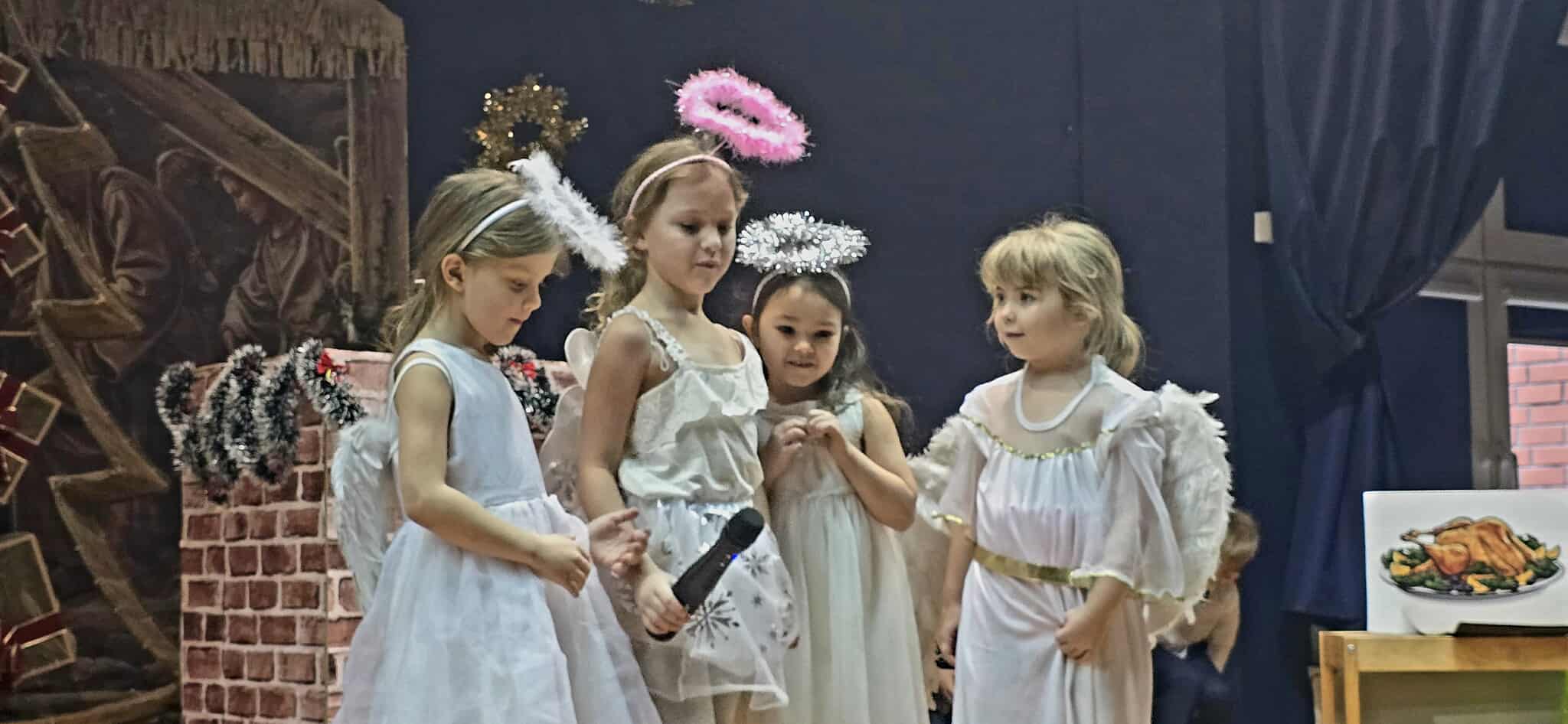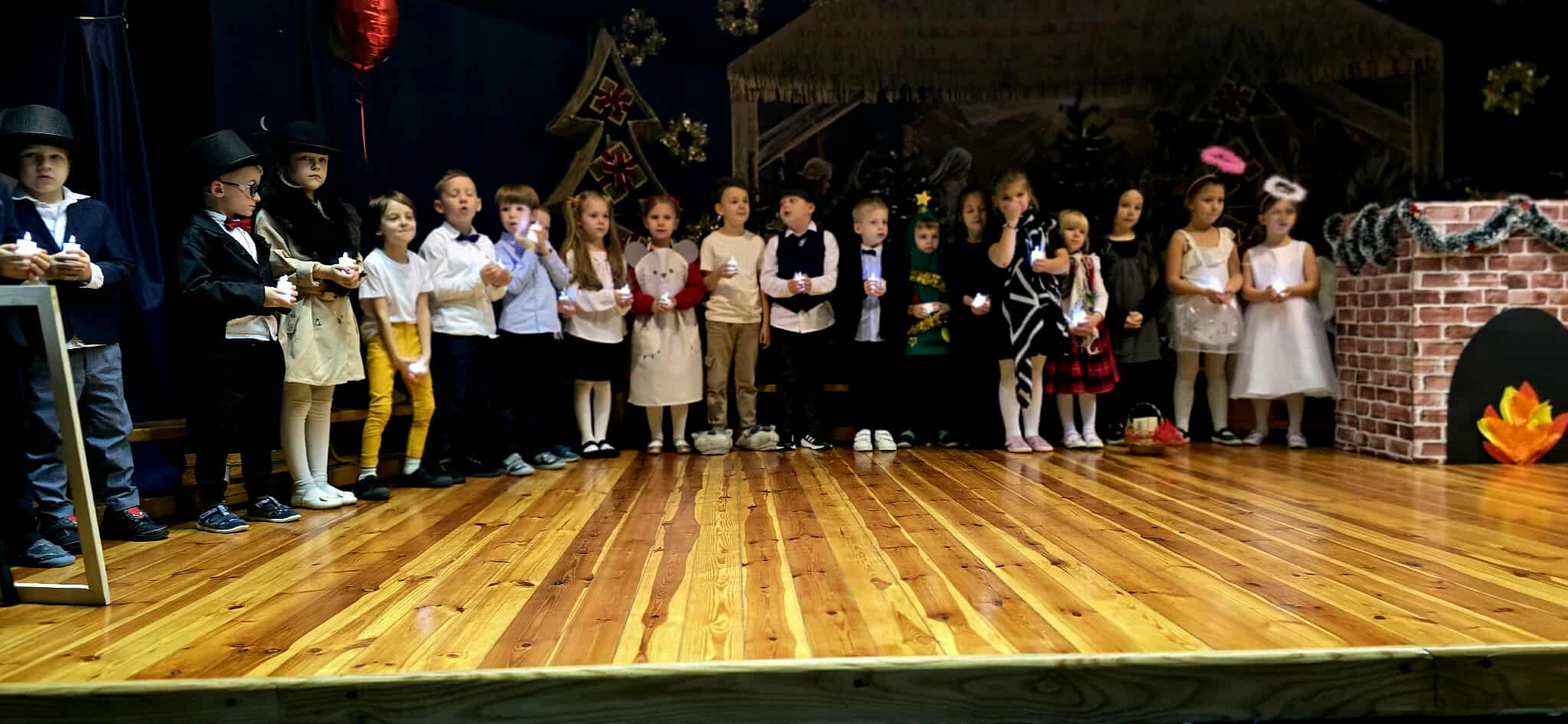 W grudniu tuż przed Świętami Bożego Narodzenia zaprosiliśmy naszych Rodziców na wyjątkową imprezę. Nasze Ciocie przygotowały dla nas scenariusz prawdziwej sztuki. Wystawiliśmy „Dziewczynkę z zapałkami”. Każdy znał swoją rolę na pamięć. Każdy miał przygotowany strój. Nasze Ciocie zadbały o dekoracje na scenie oraz o rekwizyty. Nastrój tego dnia był bardzo podniosły. Nie mogliśmy się doczekać. Widownia wypełniona po brzegi. I w końcu się zaczęło. Wszystko poszło perfekcyjnie. Było ckliwie. Było sentymentalnie. Było z przesłaniem. Pojawiły się łzy wzruszenia. Nasze Ciocie były z nas dumne a Rodziny zachwycone. Jesteśmy Artystami. Dziękujemy naszym kochanym Rodzicom za pomoc w przygotowaniach!