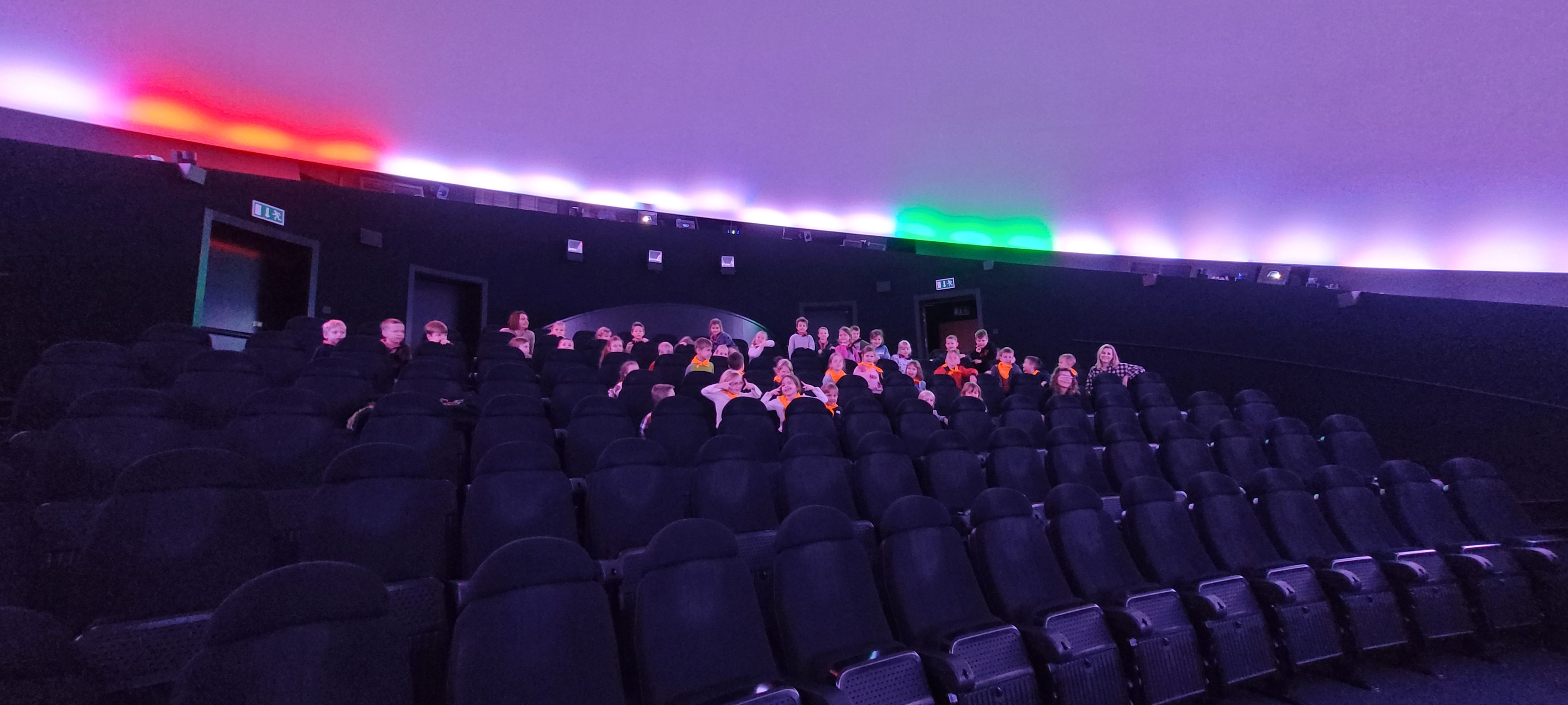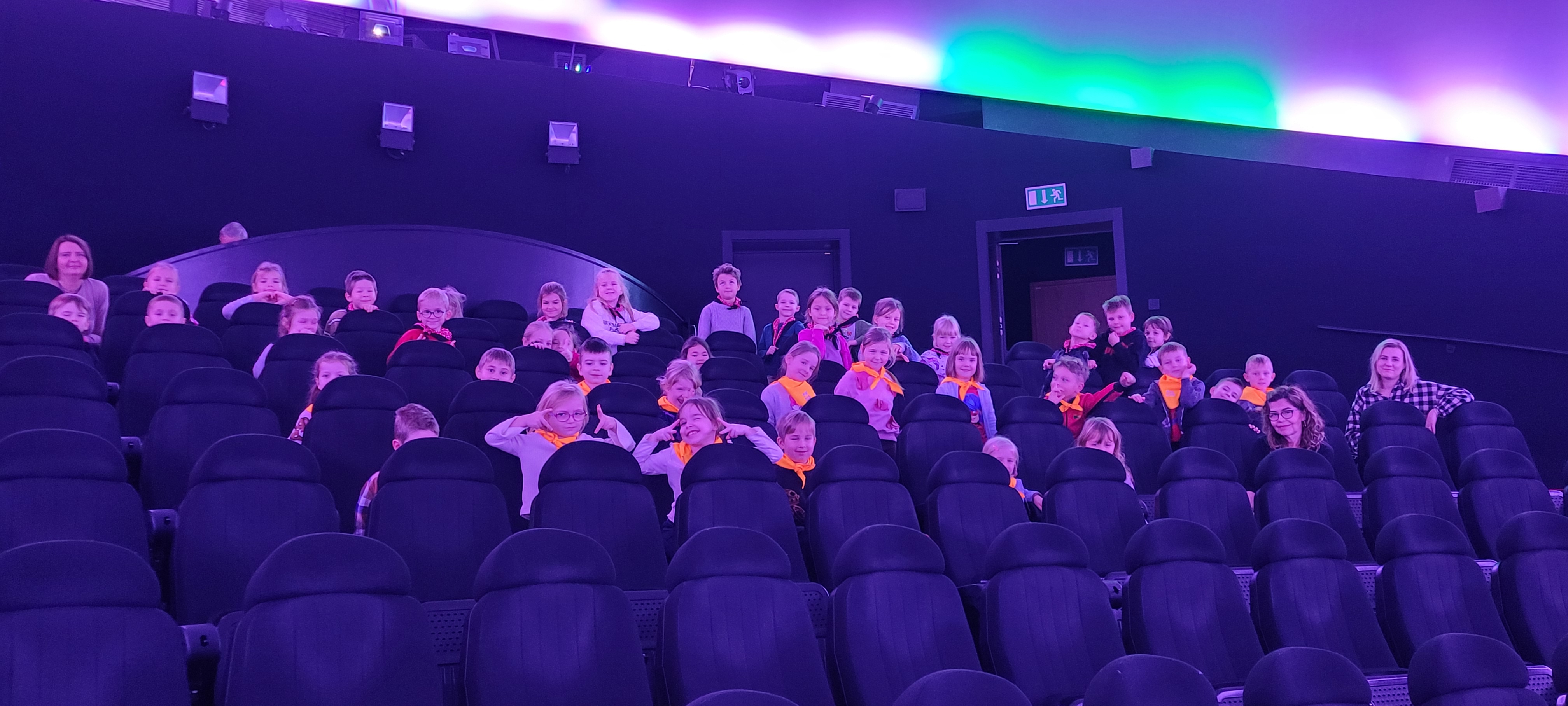12 listopada my Jabłuszka wraz z Niedźwiadkami byliśmy w Planetarium. Poznaliśmy Vladimira niedźwiedzia polarnego mieszkającego na biegunie północnym. Vladimir lubi budować domki z lodu, a obok nich – przeręble. Drugim ulubionym zajęciem misia jest łowienie ryb i oczywiście ich zjadanie. Nasz niedźwiedź był już znudzony tym, że każdy jego dzień był identyczny. I wtedy wydarzyło się coś niespodziewanego. Pewnej polarnej nocy nasz Vladimir zobaczył postać, ciągnąca za sobą dziwną walizkę. Był to pingwin James – podróżnik z bieguna południowego, który uwielbia kolekcjonować śnieżki ze śniegu leżącego w różnych rejonach świata. Razem wpadają na pomysł niezwykłej podróży, która to obfituje w wiele ciekawych wydarzeń. Projekcję poprzedził opis zjawisk astronomicznych zachodzących aktualnie na niebie, prowadzony na żywo. Wycieczkę zaliczamy do bardzo udanych. Dziękujemy.